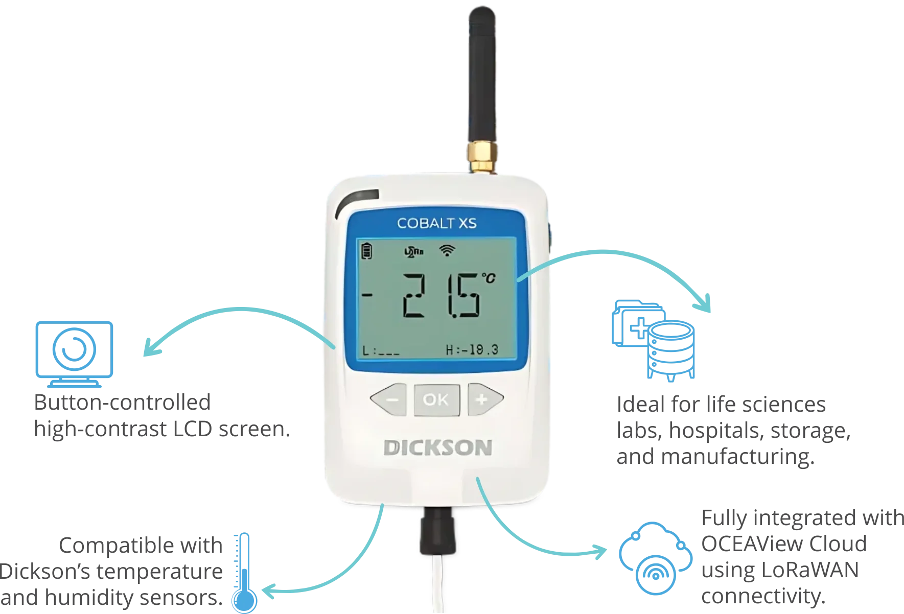Cobalt XS is the latest addition to Dickson’s data logger range for the OCEAView monitoring solution. Offering a small footprint and LoRaWAN wireless connectivity, the data logger supports a variety of external temperature and relative humidity sensors.