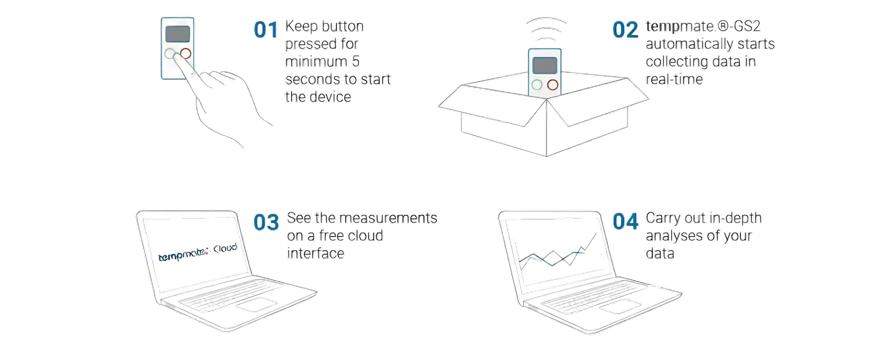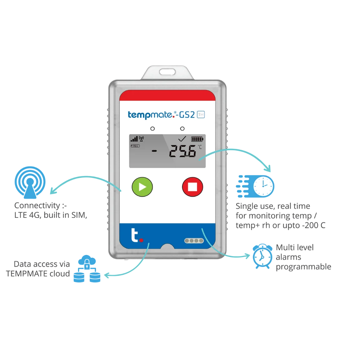 Tempmate®GS2 tracks temperature, humidity, light, impact,